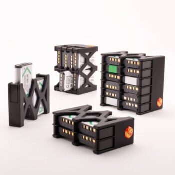 Each holder is designed for easy insertion and removal. You can push the battery out from the bottom with one finger, with secure retention that won’t damage the casing. Built for intensive use, these cases are tough and durable, and made in the EU from 100% recyclable, biocompostable plant-based material.
